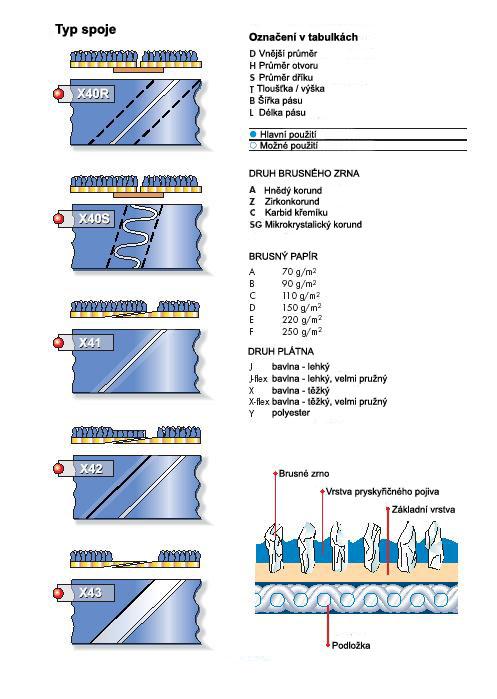 Základní druhy brusiva na pružných podložkách