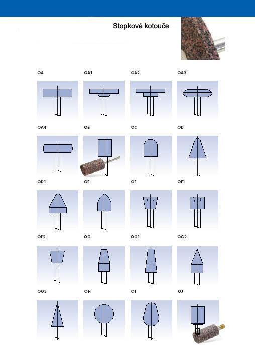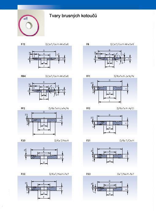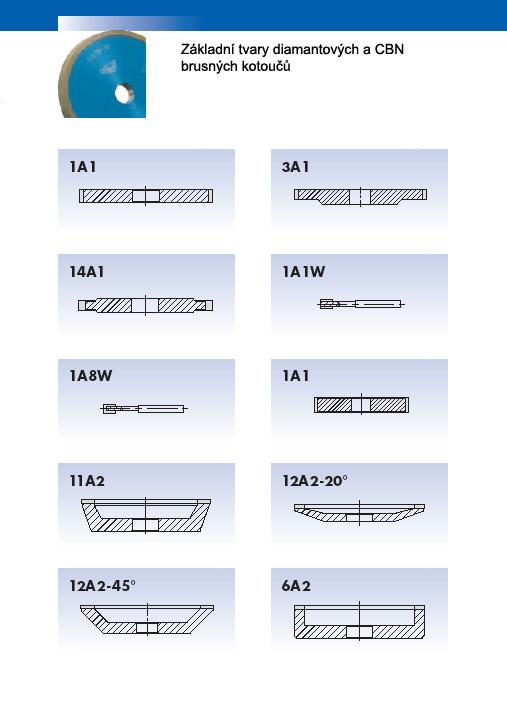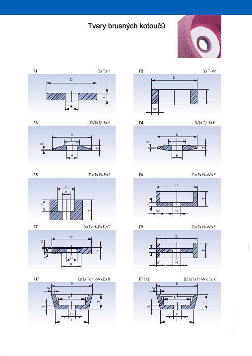 Základní tvary brusných kotoučů a segmentů s keramickým pojivem